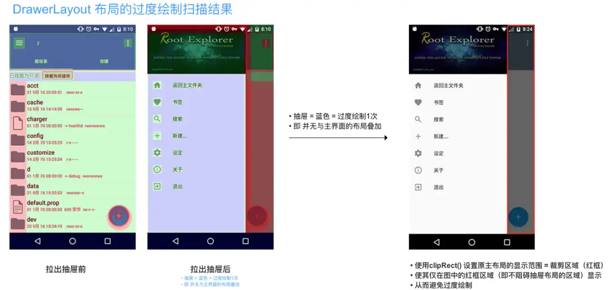 // 2. 通过clipRect()设置原主布局的显示范围 = 裁剪区域,使其仅在上图中的红框区域(即不阻碍抽屉布局的区域)显示