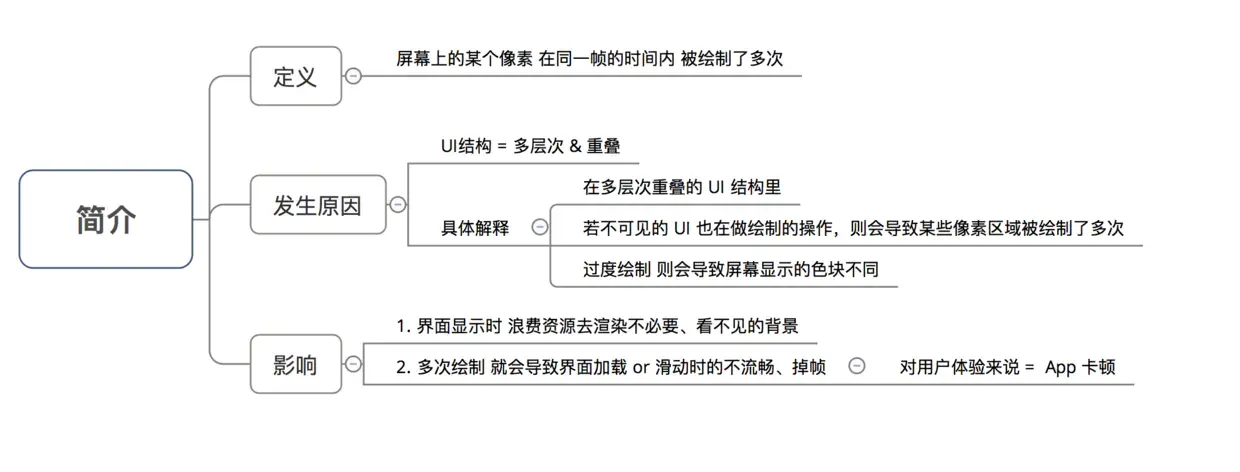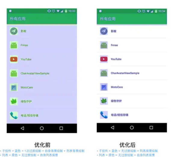 很多 过度绘制是难以避免的,如 上述实例的 文字 & 背景导致的过度绘制;只能尽可能避免过度绘制: