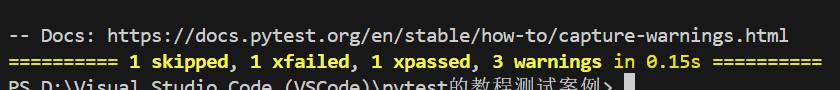 xfailed - 有1个测试预期会失败且确实失败了(标记了@pytest.mark.xfail且断言未通过)