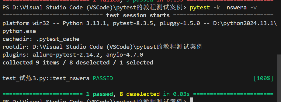 (pytest -k <substring> -v)里面的<substring>就是你封装的名 ,也就是test_nswera()中的nswera