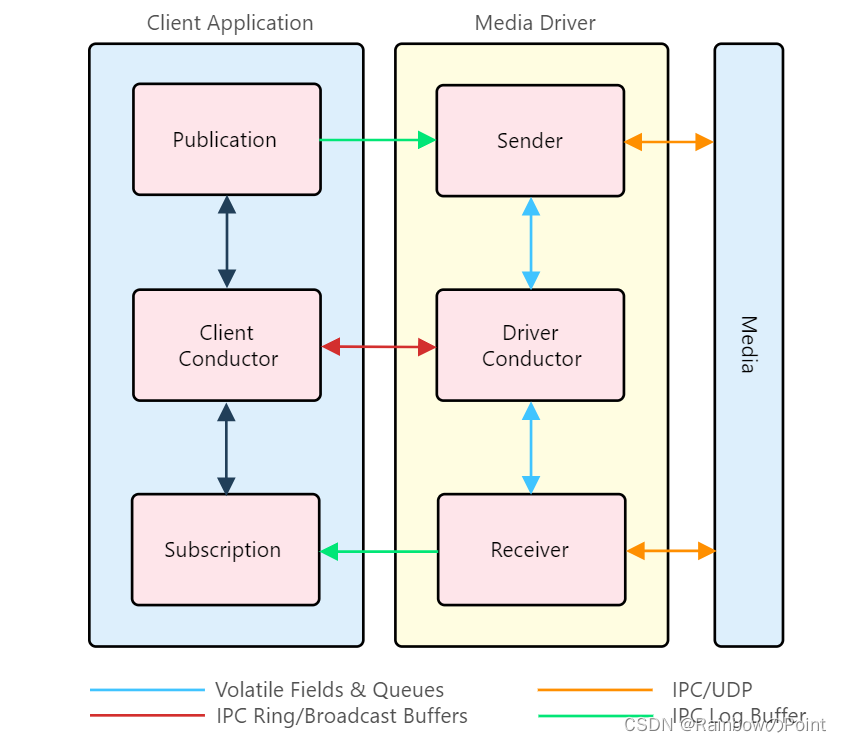 Aeron:Media Driver 在继续阅读之前,读者应先熟悉部分的内容。Media Driver组件负责管理通过Media(UDP 或 IPC)发送和接收任何活动publications和/或subscriptions的数据。Media Driver非常灵活,可以根据大多数情况进行配置,从高性能、最小延迟到宽松、低资源环境。虽然Media Driver在概念上类似于分布式消息代理(message broker),但它缺少一些消息代理(message broker)可能具有的功能。