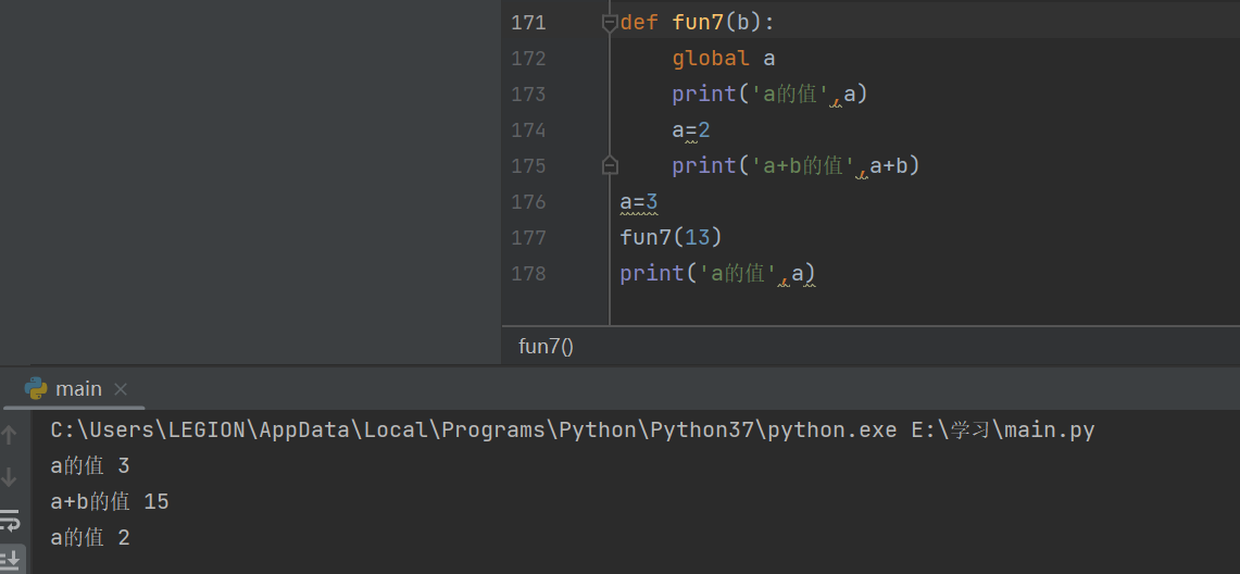 如果需要在函数外部和函数内部都使用同一个变量(不会因为在函数内部而被重新赋值),可以在函数中使用global关键字对变量进行声明