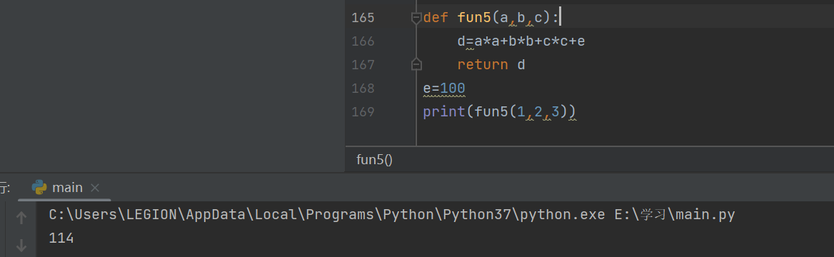 函数内部的代码可以使用外部定义的全局变量。所以这里的e使用的是e=100