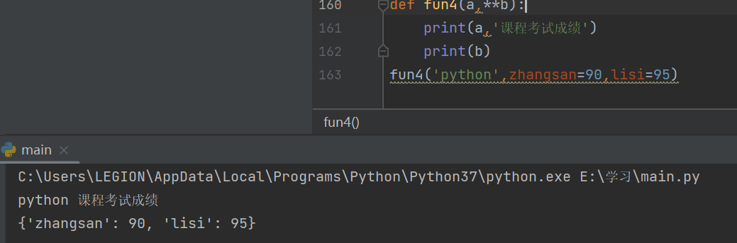 4.传递给关键字参数的数据包含键和值,其中键和值之间使用等号连接