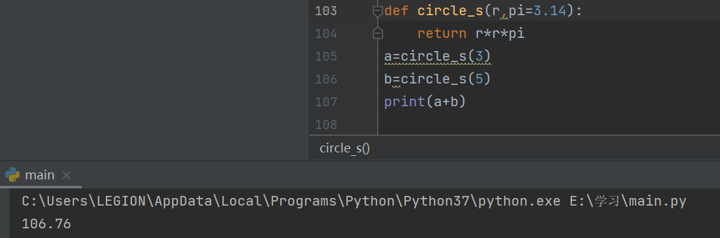 如上图所示,r就是必填参数,所以不能将形参r的位置和pi的位置互换。此外,当有n个必填参数时,再调用函数的时候至少需要填入n个数据