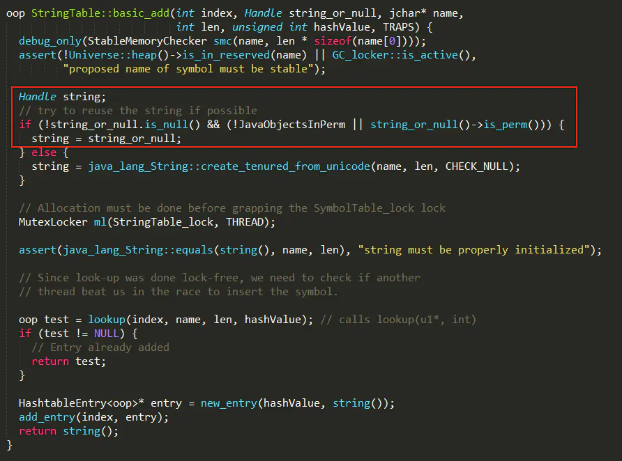 5、如果StringTable不存在该字符串,则通过StringTable::basic_add方法添加字符串引用到StringTable,实现如下:
