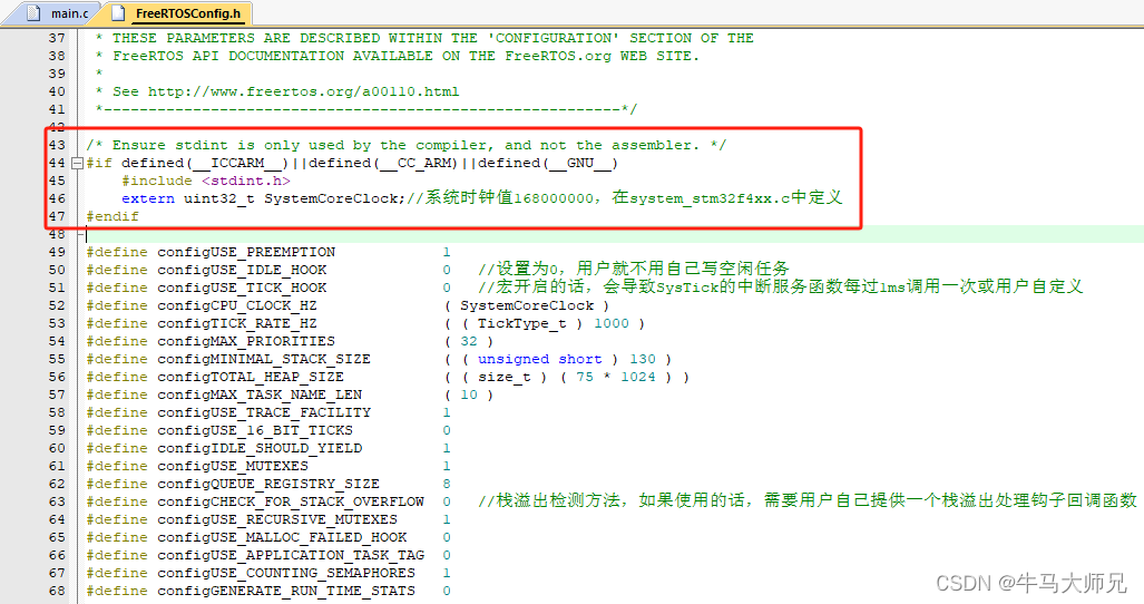 ⑧、打开FreeRTOSConfig.h文件,因MDK默认使用armcc编译器,需在FreeRTOSConfig.h文件中添加defined(_CC_ARM),避免源码找不到SystemCoreClock,详细添加如下: