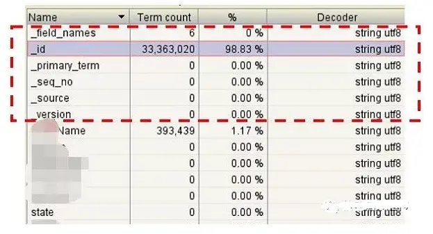 通过Luke工具查看ES的lucene文件如下,主要增加了id和source字段:
