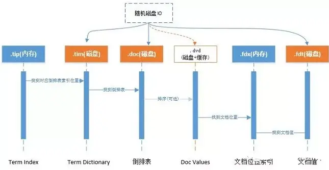 Lucene 随机三次磁盘读取比较耗时。其中.fdt文件保存数据值损耗空间大,.tim和.doc则需要SSD存储提高随机读写性能。