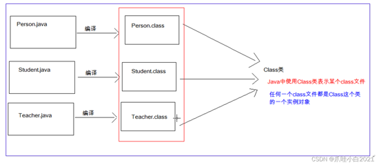 在学习面向对象的时候,我们介绍说当使用到某个类的时候,JVM会从硬盘上把class文件加载到方法区中。接着JVM会在堆内存中创建一个Class对象,使用这个对象表示当前的那个class文件。