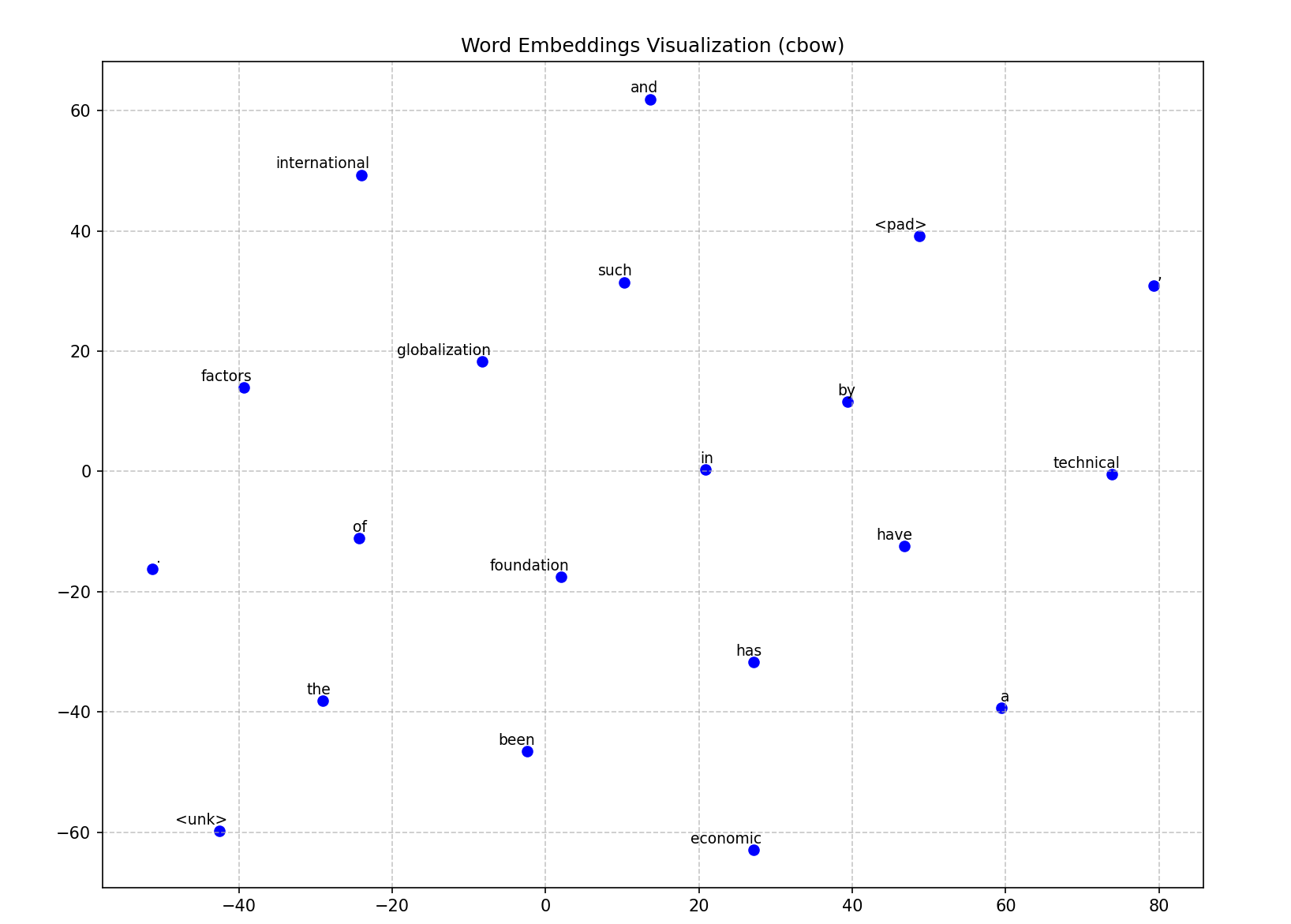 Visualizer.plot_word_embeddings(cbow_model, dataset, model_type="cbow")