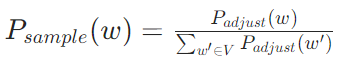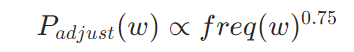 - 基础分布:基于词频的0.75次方调整,降低高频词的采样概率: