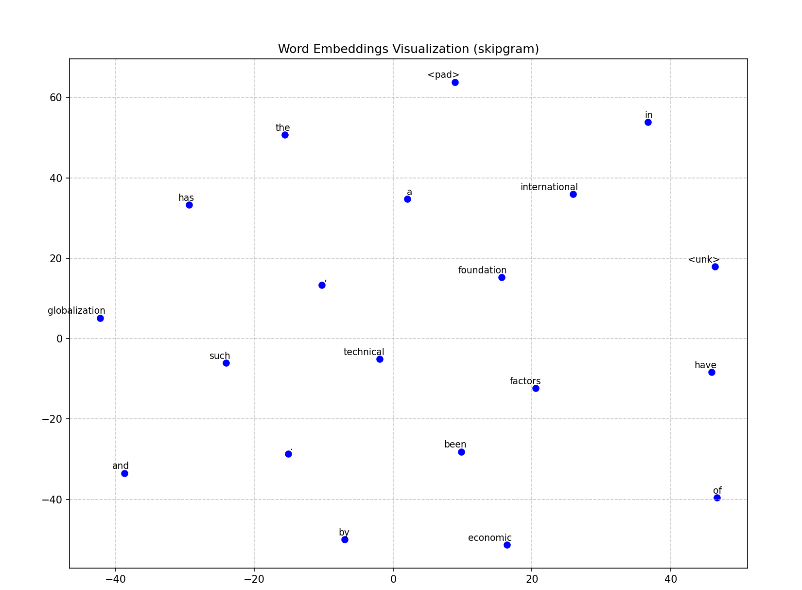 Visualizer.plot_word_embeddings(skipgram_model, dataset, model_type="skipgram")