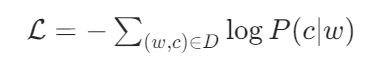 其中D为训练数据中的(中心词,上下文词)对集合。