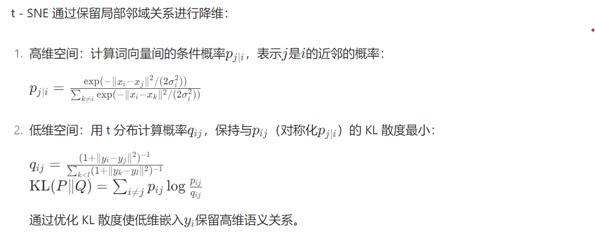 为可视化高维词向量,使用 t - SNE(t - Distributed Stochastic Neighbor Embedding)算法将词向量从embed_size维降至 2 维。