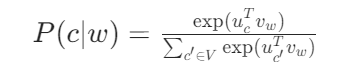 理想情况下,模型应最大化条件概率P(c∣w),传统方法用 Softmax 计算: