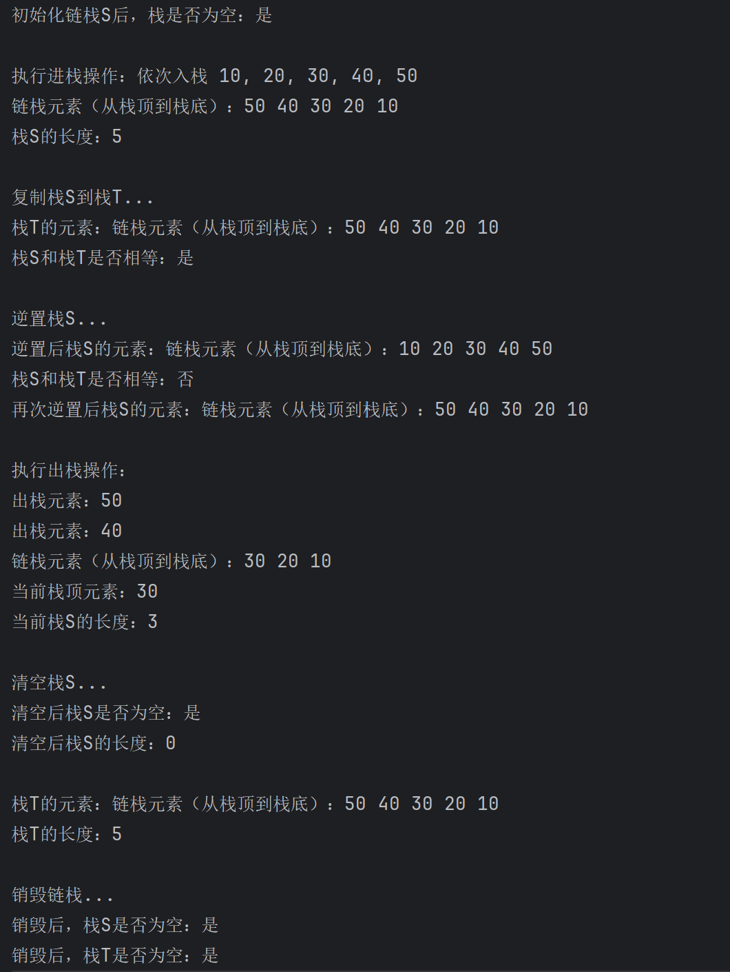 - 空间复杂度:O (1)(仅用一个临时指针)注意:链栈无法像顺序栈那样直接通过数组下标获取长度,必须遍历链表。