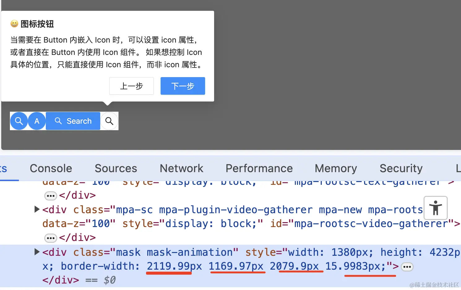 那是因为 mask 的样式变化有个动画的过程,要等动画结束计算的 style 才准确。