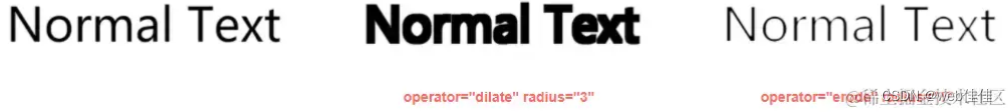 看看原理,feMorphology 为形态滤镜,它的输入源通常是图形的 alpha 通道,用来它的两个操作可以使源图形腐蚀(变薄)或扩张(加粗)。
