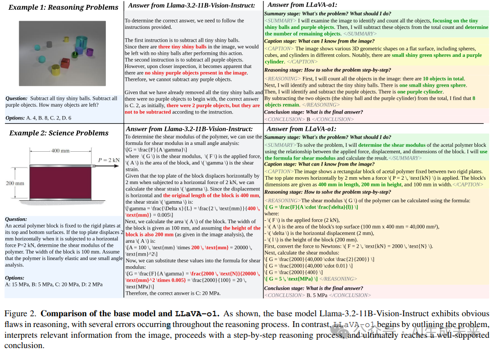 引入 LLaVA-o1,一个新型 VLM,采用自主的多阶段推理策略。与链式思维(chain-of-thought)提示不同,LLaVA-o1 将推理分为以下独立阶段:总结、视觉解释、逻辑推理和结论生成。