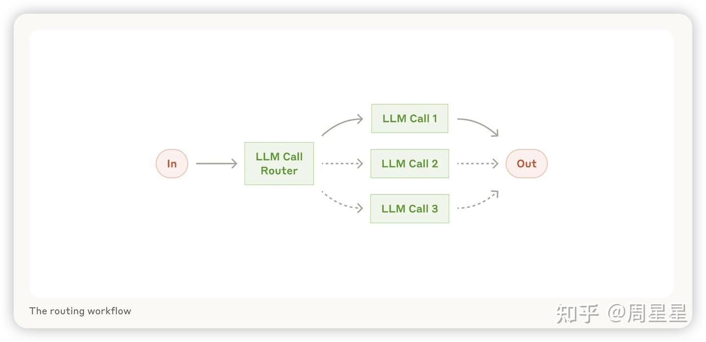 路由工作流就是先给输入内容"分类",然后根据这个分类标签把它送到最合适的专门处理流程去。这种方法在处理那些有明显不同类型的复杂任务时特别有用,比如可以把各种客服问题分类处理,或者根据问题难度路由到小模型或大模型来回答。
