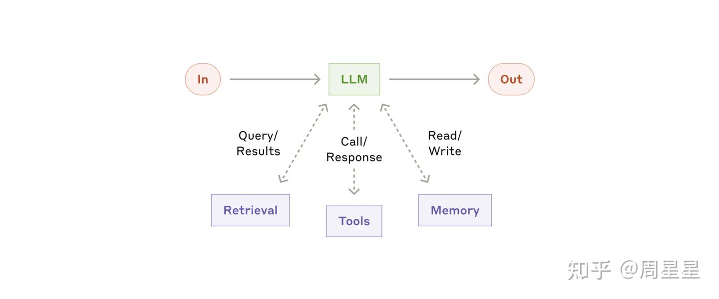 增强型大语言模型(augmented LLM)是Agent的基本构建单元,它集成了检索、工具和记忆等能力。现代模型能够主动使用这些功能,如生成搜索查询和选择适当工具。