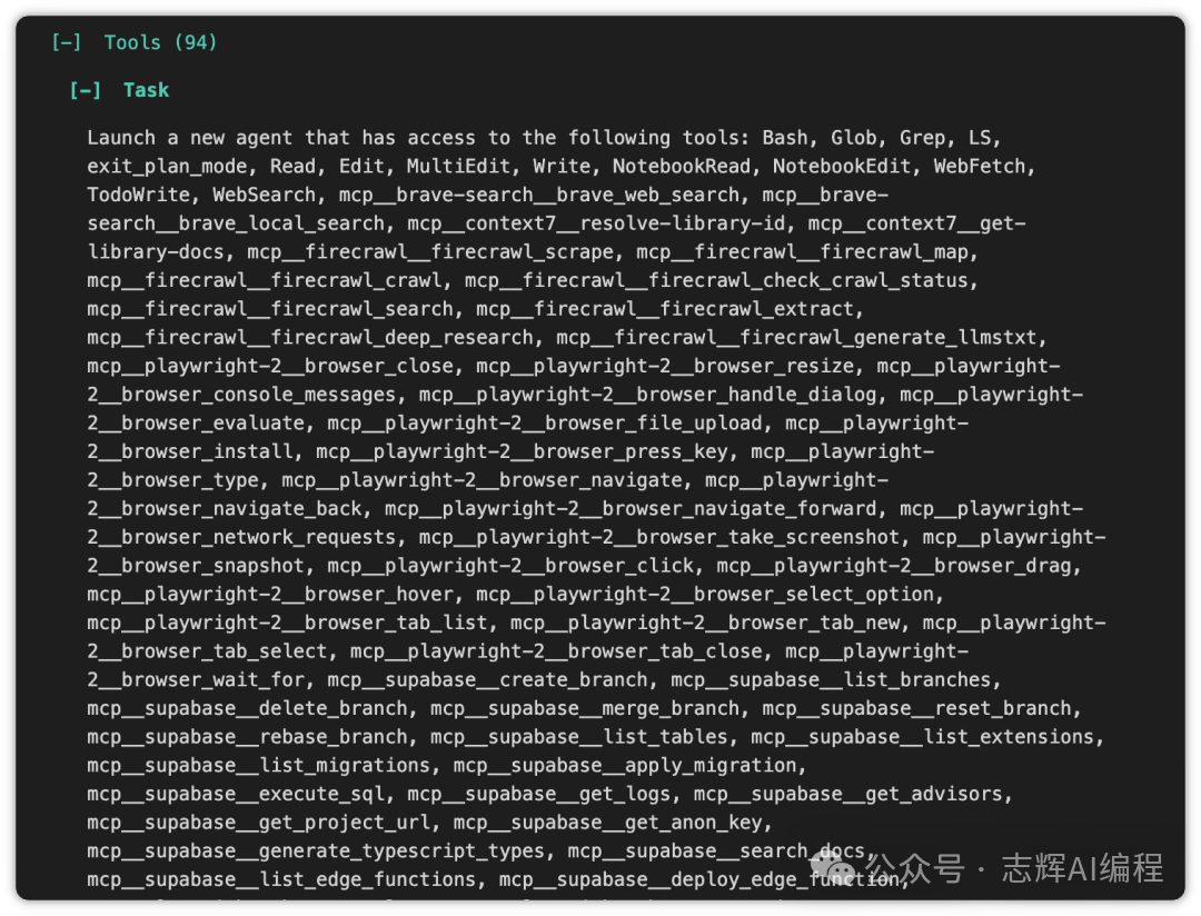 很容易看到,我当前可以用的工具有 94 个,当然也包含了 MCP 的工具使用。