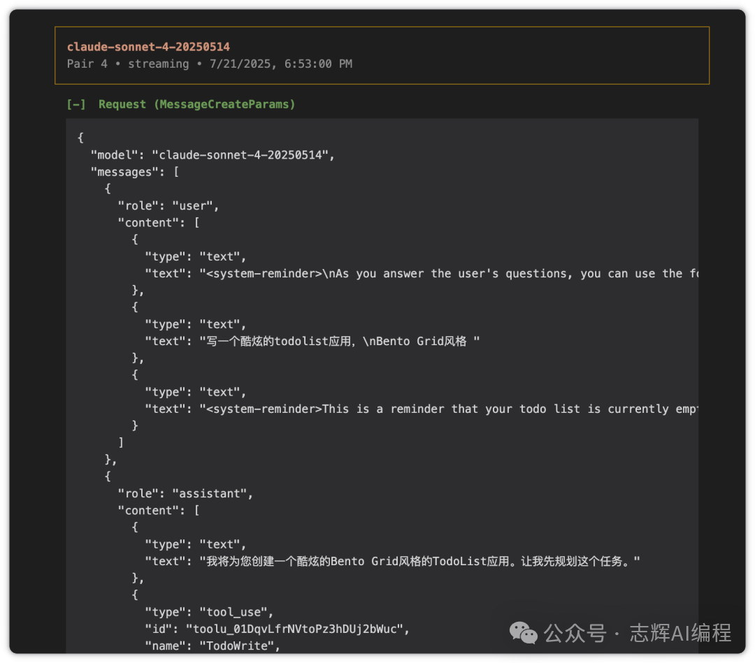 但这个claude-trace工具,直接把这些全暴露出来了!