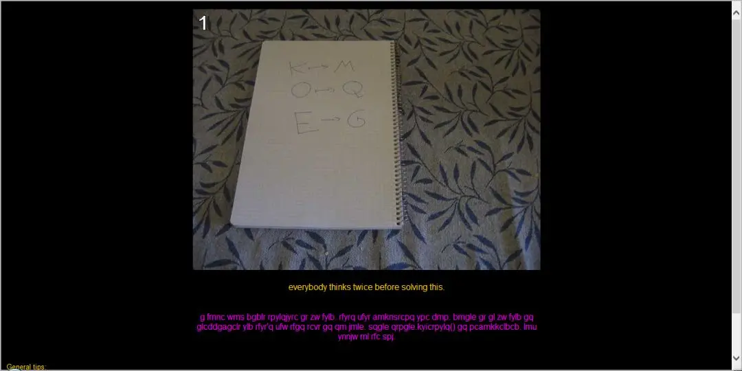 游戏这就正式开始了。图片中的笔记本给了三组字母,很容易发现规律:前面的字母往后移动两位就是后面的字母。