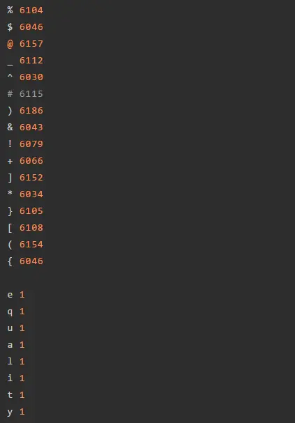意思就是:要在下面这一大串字符里找到出现次数最少的几个字符