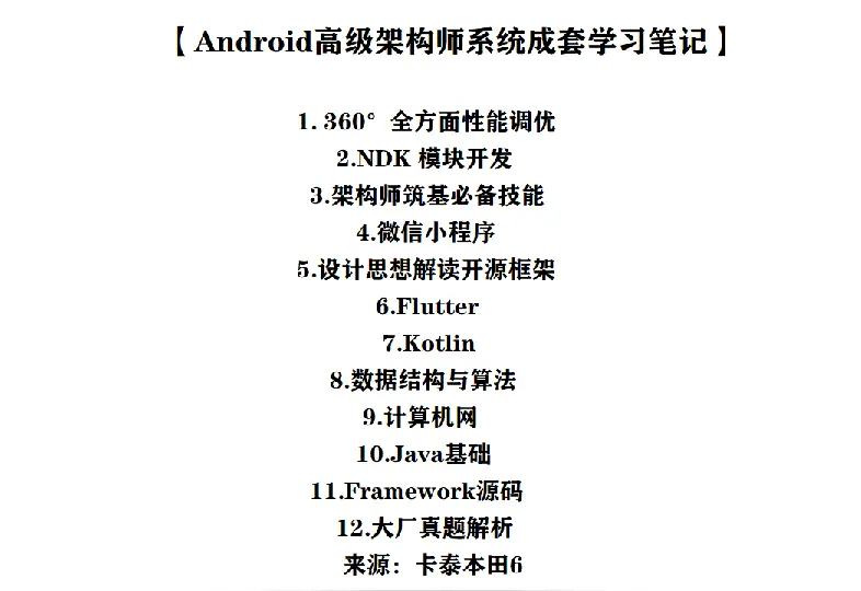 像刚刚开始学Android开发小白想要快速提升自己,最快捷的方式,就是有人可以带着你一起分析,这样学习起来最为高效,所以这里分享一套高手学习的源码和框架视频等精品Android架构师教程,保证你学了以后保证薪资上升一个台阶。