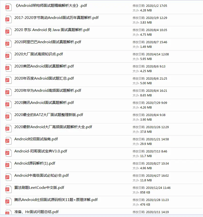 ①「Android面试真题解析大全」PDF完整高清版+②「Android面试知识体系」学习思维导图压缩包阅读下载,最后觉得有帮助、有需要的朋友可以点个赞
