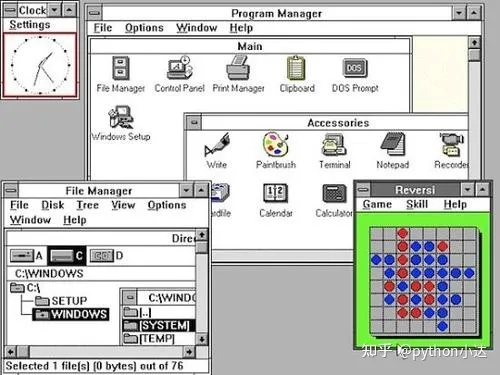 我们不得不暂停我们的Python时间,转而看一看瞬息万变的计算机行业。1990年代初,个人计算机开始进入普通家庭。Intel发布了486处理器,windows发布window 3.0开始的一系列视窗系统。计算机的性能大大提高。程序员开始关注计算机的易用性 ,比如图形化界面。