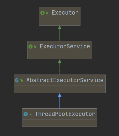 从以上结果可以看出 submit() 方法可以配合 Futrue 来接收线程执行的返回值。它们的另一个区别是 execute() 方法属于 Executor 接口的方法,而 submit() 方法则是属于 ExecutorService 接口的方法,它们的继承关系如下图所示: