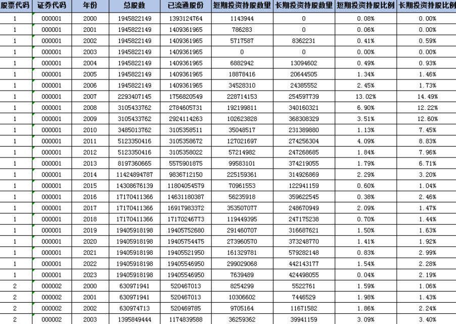 2000-2023年 上市公司-长期短期机构投资者持股数据