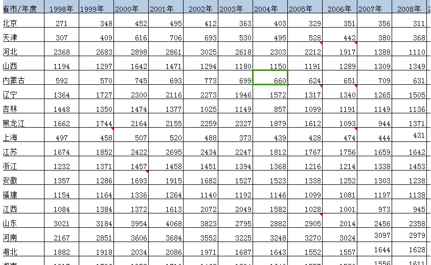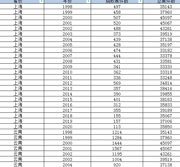 1998-2020年 省级-贪污腐败、职务犯罪立案数数据.rar