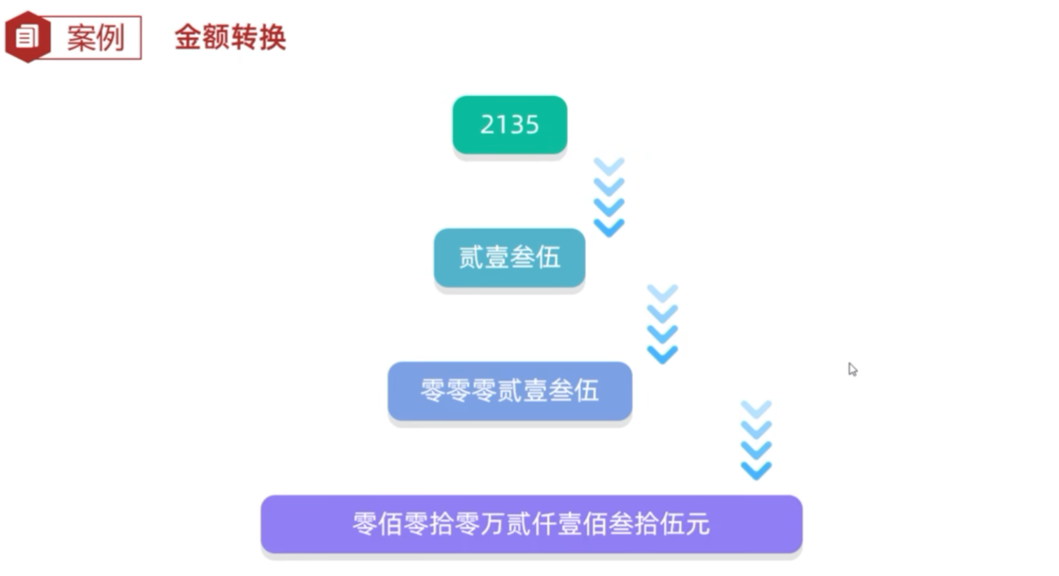 逆着推算,先去掉单位,后去掉前面的零,等到2135. 写代码的 时候就顺着这个逻辑写。