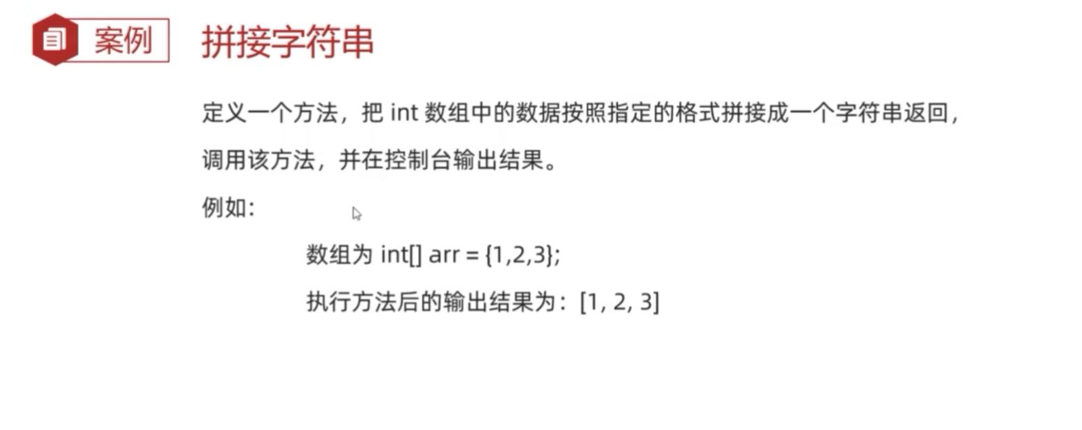 定义一个方法,把int数组中的数据按照指定的格式拼接成一个字符串返回,