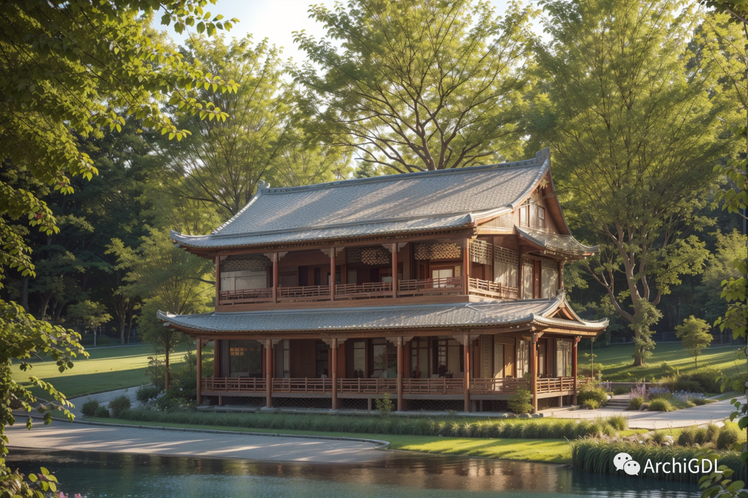 - 氛围感十足的临水楼阁: