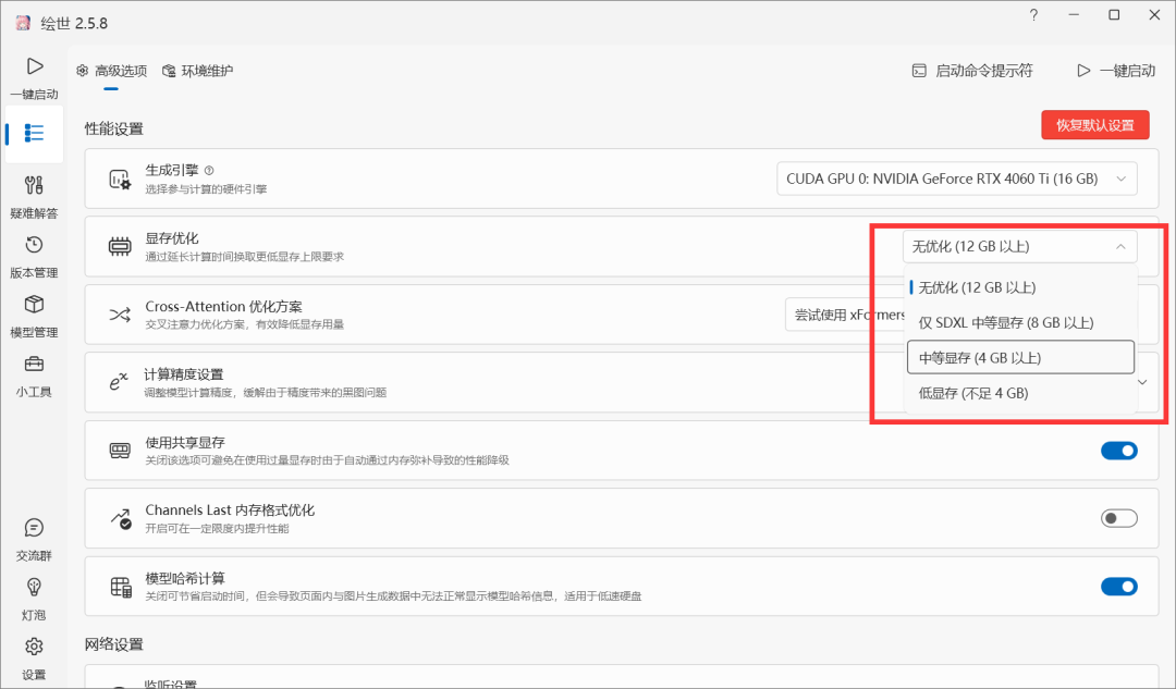 本教程基于Stable Diffusion本地整合包,显卡4060TI 16GB显存来写,这里说下: