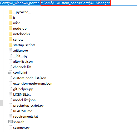 下载完成后会在\ComfyUI\custom_nodes目录下多一个ComfyUI-Manager的文件夹。