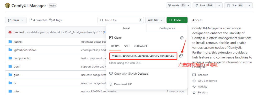 相关说明:(1)关于插件的git地址,我们可以在github插件首页获取。