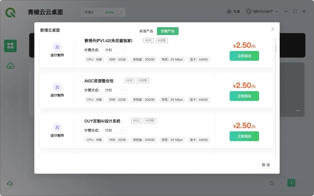 3、选择自己一个需要的云电脑使用即可,里面包含了模型、插件和汉化内容具体自行体验,不使用的时候记得关机!