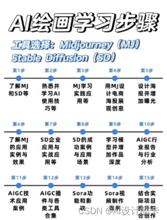 对于从来没有接触过AI绘画的同学,我已经帮你们准备了详细的学习成长路线图。可以说是最科学最系统的学习路线,大家跟着这个大的方向学习准没问题。