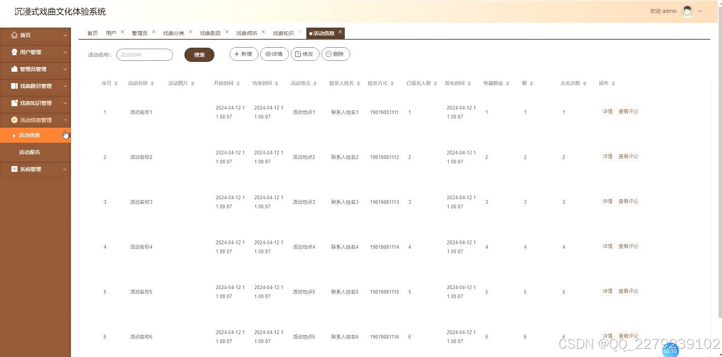 136基于java ssm springboot戏曲文化系统戏曲剧目知识活动报名(源码+文档+运行视频+讲解视频)