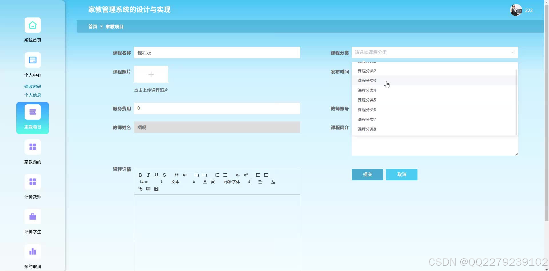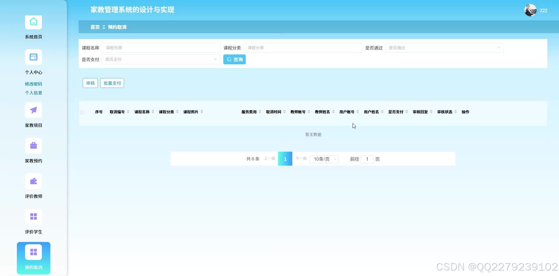 针对传统家教市场存在信息不对称(家长找家教平均耗时 3 天)、匹配精准度低(学科 / 年级适配误差率 40%)、服务流程无规范等问题,本文设计家教管理系统,构建 “信息对接 - 服务管控 - 信誉保障” 一体化平台。