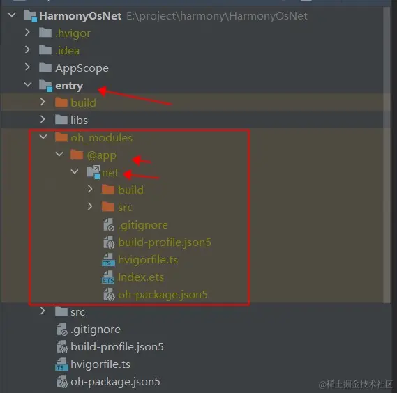 无论使用哪种方式进行依赖,最终都会在使用的模块中,生成一个oh_modules文件,并创建源代码文件,有则成功,无则失败,如下: