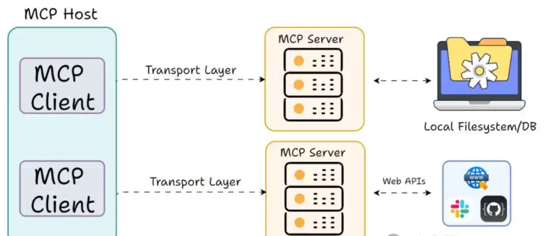 通常而言,MCP 的技术框架围绕三个关键组件构建:主机(Host)、客户端(Client)和服务器(Server)。这些组件共同协作,形成了一个高效、可扩展的生态系统,为 AI 模型与外部资源之间的动态交互提供了坚实的基础。